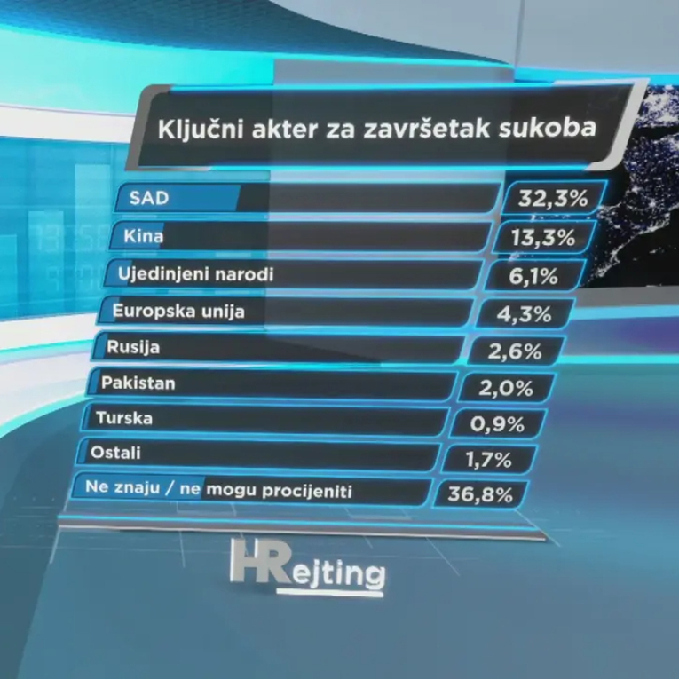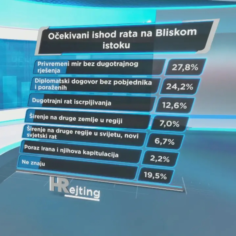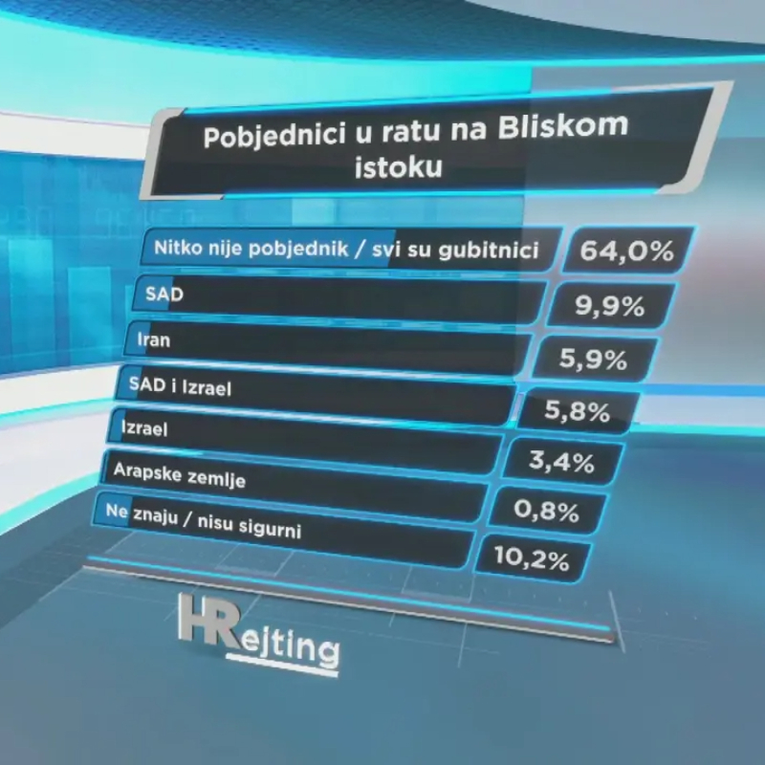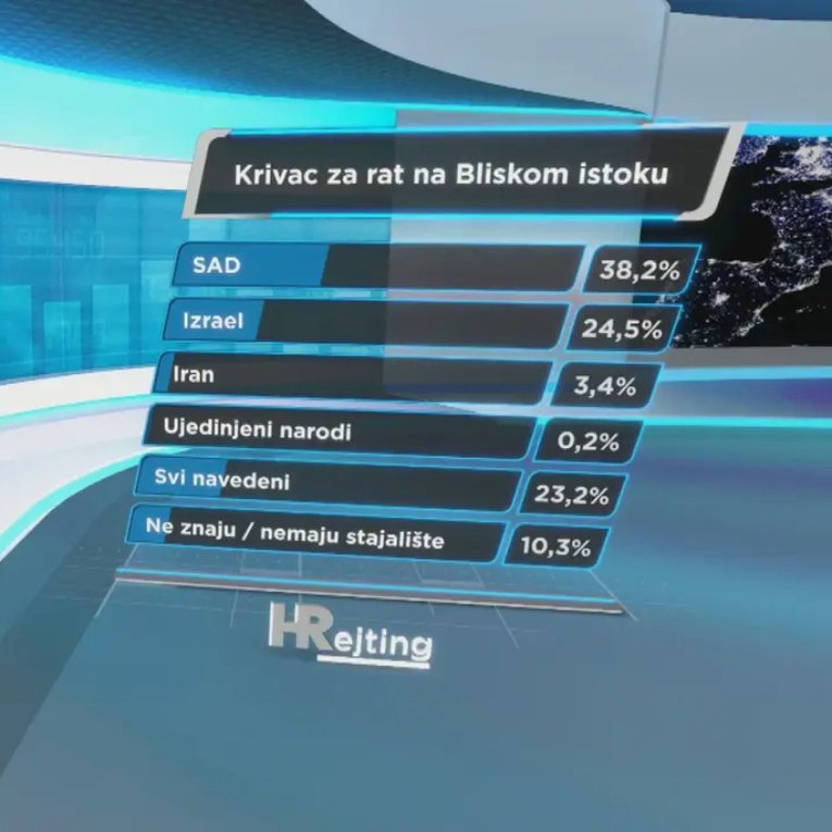 Većina hrvatskih građana smatra Sjedinjene Američke Države najodgovornijima za sukob na Bliskom istoku, dok čak 76% ispitanika napade na Iran doživljava kao kršenje međunarodnog prava. Prema mišljenju većine, u tom ratu nema pobjednika, pokazalo je najnovije istraživanje HRejting, a prenosi HRT.