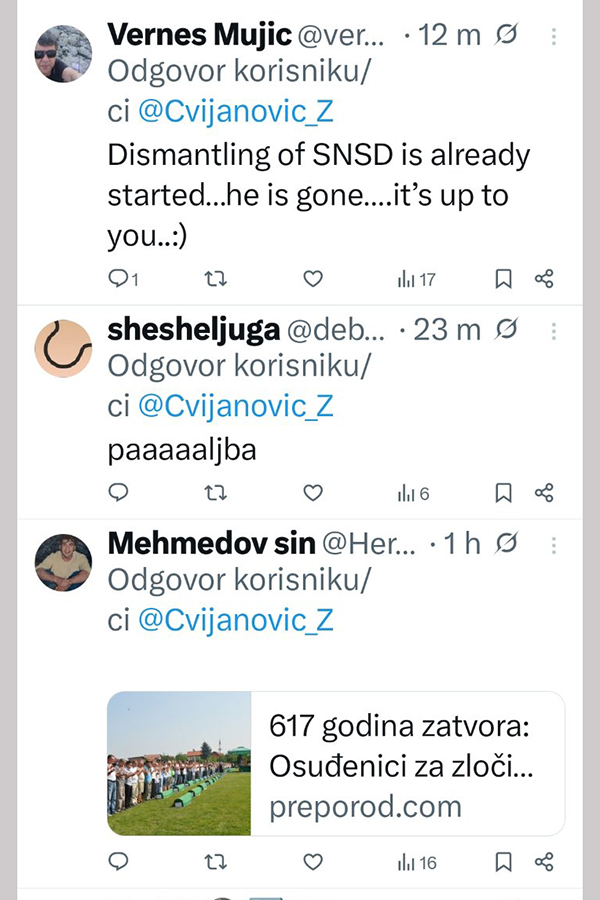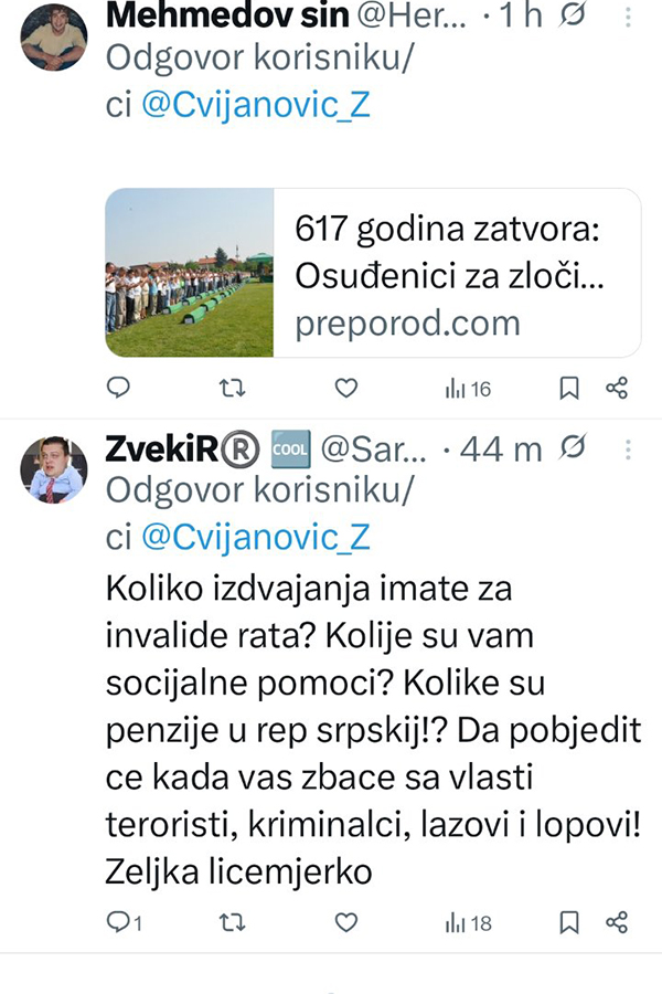 Ne stišavaju se reakcije na društvenim mrežama, nakon istupa Željke Cvijanović, članice Predsjedništva Bosne i Hercegovine i članice Glavnog odbora SNSD-a.