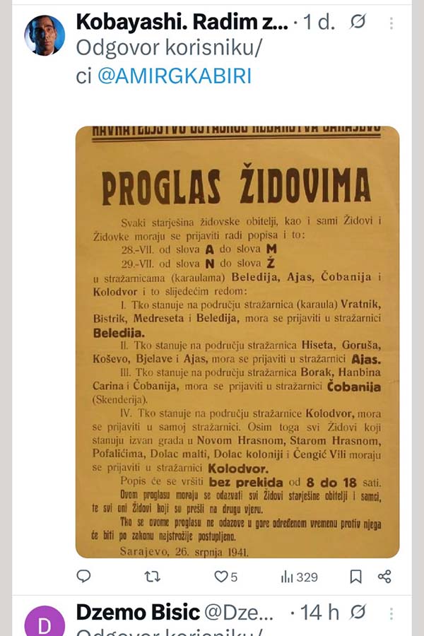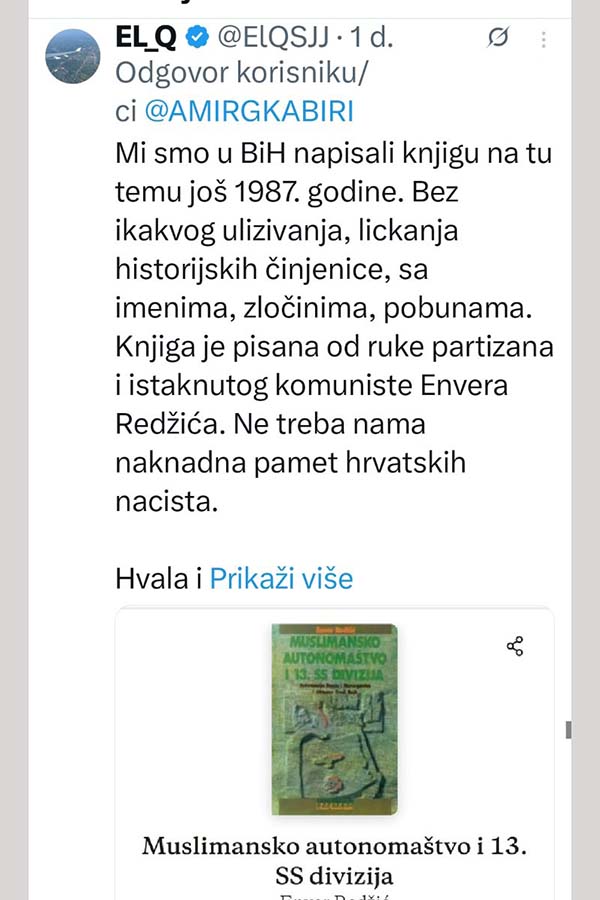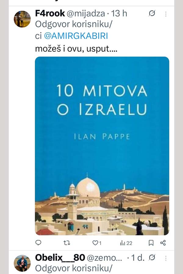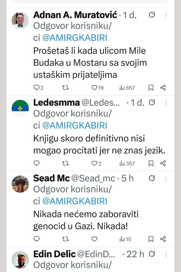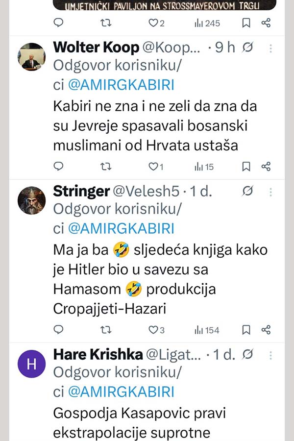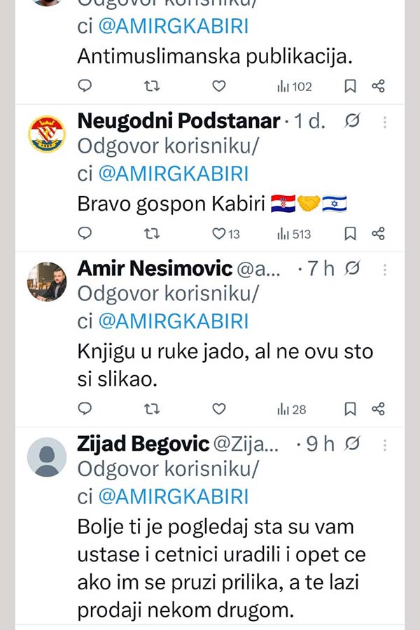 Povijest se nikada ne smije zaboraviti niti prepisivati. Preporučena i važna publikacija, poručio je na društvenim mrežama Amir Gross Kabiri, kontroverzni izraelski poduzetnik i prijatelj lidera HDZ-a BiH Dragana Čovića.