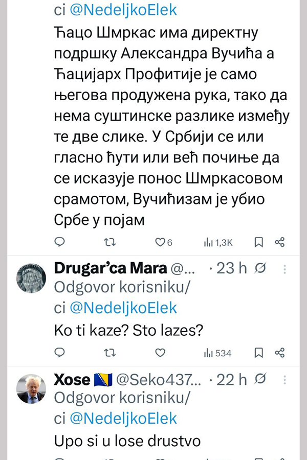 Danima se ne stišavaju reakcije, nakon istupa Nedeljka Eleka, Dodikovog prvog čovjeka u Istočnom Sarajevu.