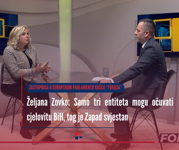 Samo tri entiteta mogu očuvati cjelovitu BiH, toga je Zapad svjestan, poručila je Željana Zovko, HDZ-ova zastupnica u Europskom parlamentu za RTVHB, medijsko glasilo Čovićevog HDZ-a.