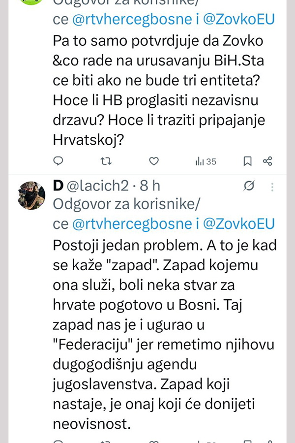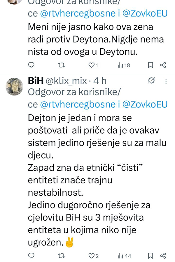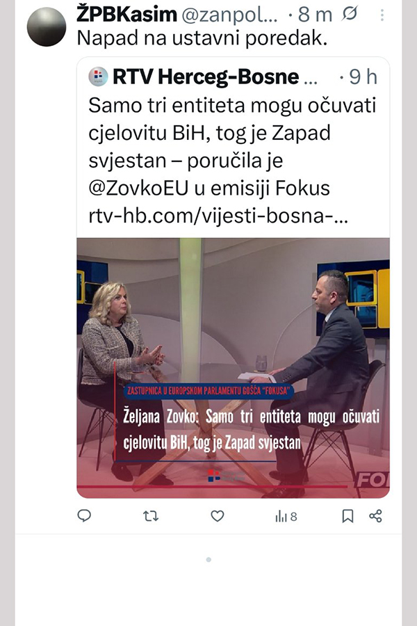 Željana Zovko je, naime, gostovala na RTVHB, medijskom glasilu Čovićevog HDZ-a, gdje je ponovno javno govorila o uspostavi trećeg entiteta.