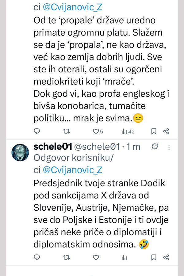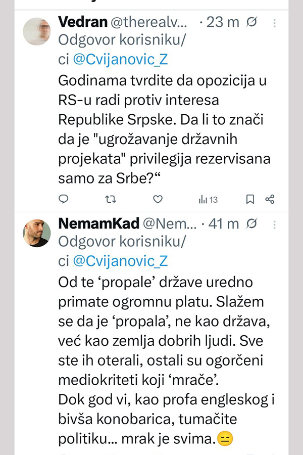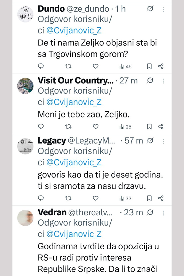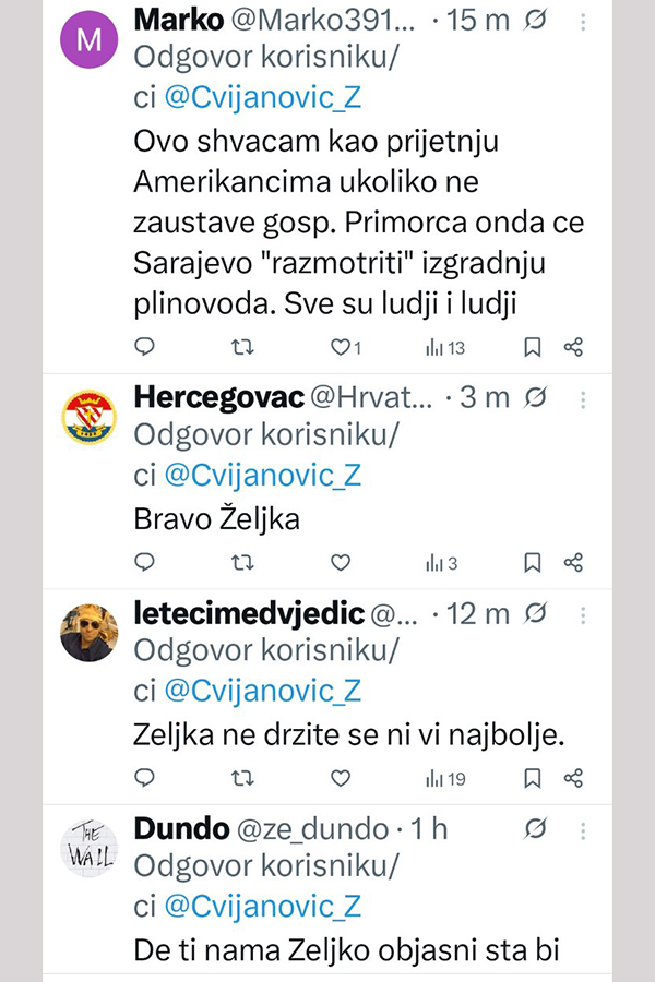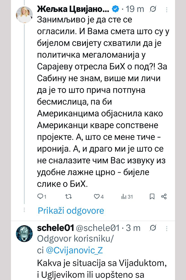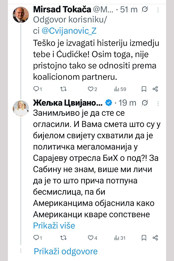 Ne stišavaju se reakcije na društvenim mrežama, nakon istupa Željke Cvijanović, članice Predsjedništva Bosne i Hercegovine. Cvijanovićki je stigao i odgovor Mirsada Tokače, direktora Istraživačko dokumentacionog centra u Sarajevu.