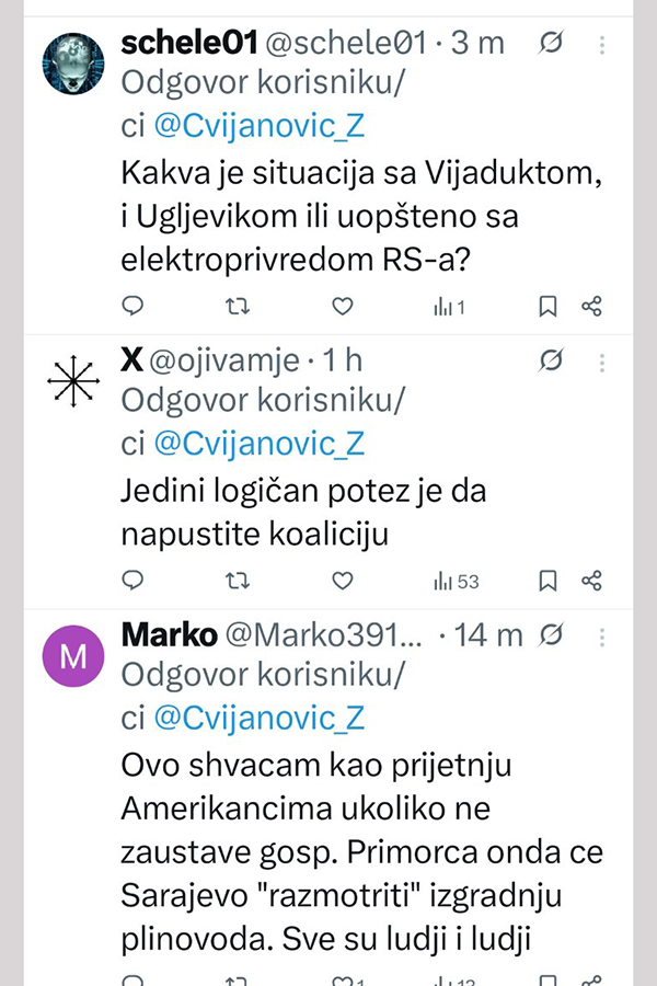 Posebna je glupost ustvrditi kako jedan Amerikanac, sa jasnom političkom identifikacijom “ugrožava” neki američki investicioni projekat. Gomila razmaženih mediokriteta koji su umislili da upravljaju planetom, poručila je Cvijanović.