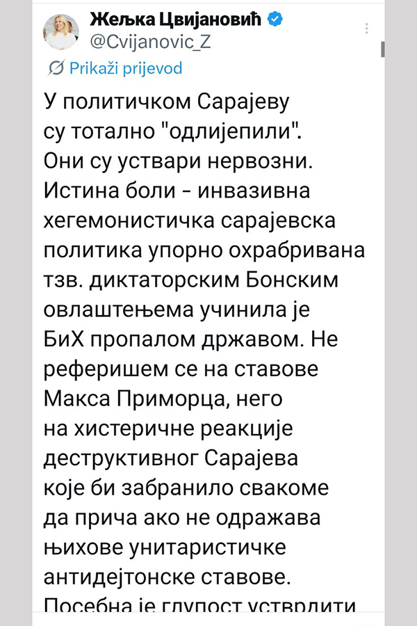 Ne referišem se na stavove Maksa Primorca, nego na histerične reakcije destruktivnog Sarajeva koje bi zabranilo svakome da priča ako ne odražava njihove unitarističke antidejtonske stavove.