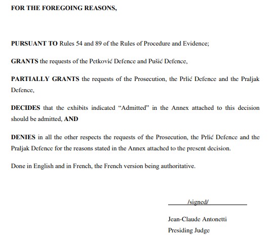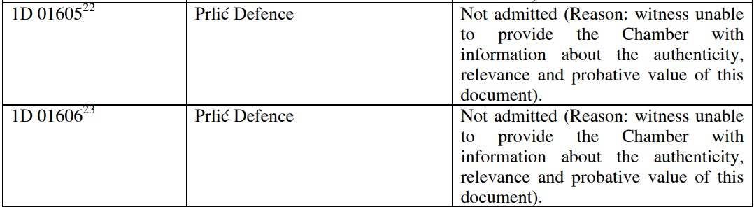 U svojoj odluci su i naveli razloge za odbijanje dokumenta: “Svjedok nije u mogućnosti Vijeću pružiti informacije o autentičnosti, relevantnosti i dokaznoj vrijednosti ovog dokumenta”.