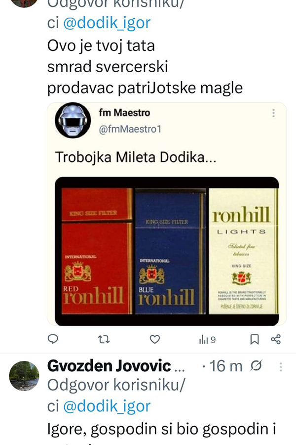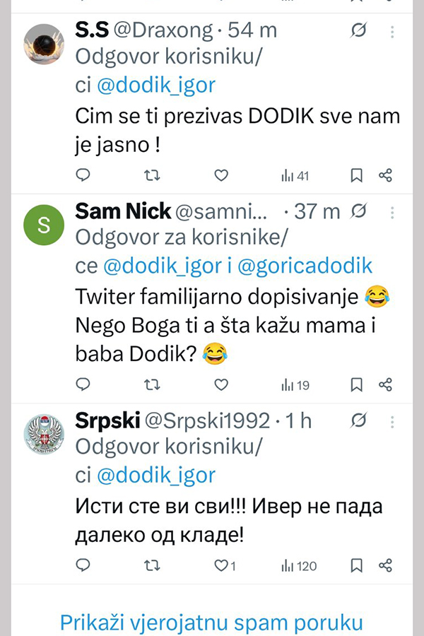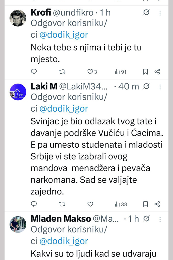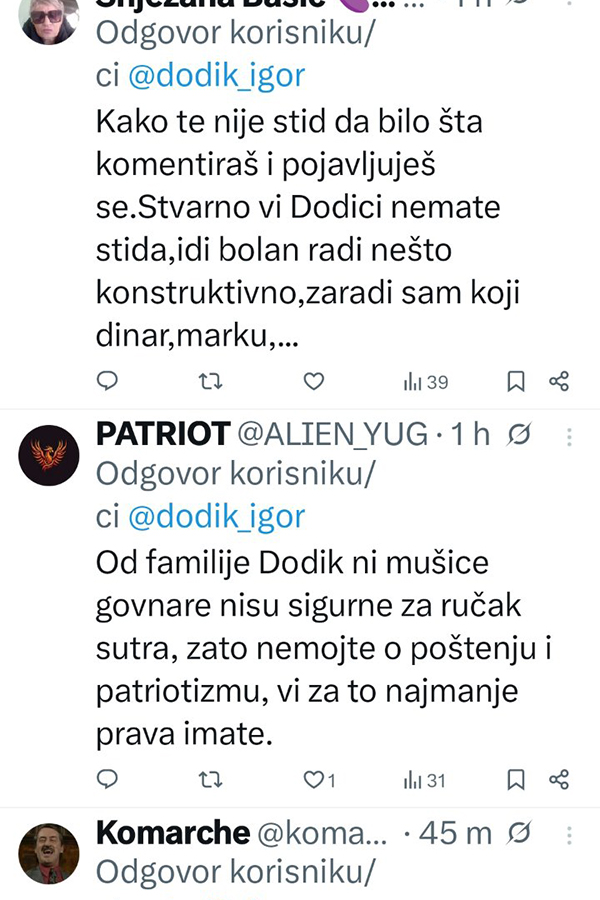 Ne stišavaju se reakcije na društvenim mrežama, nakon istupa Igora Dodika, organizacijskog sekretara SNSD-a i sina smijenjenog entitetskog predsjednika Milorada Dodika.