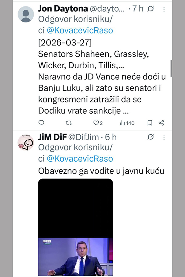 Radovan Kovačević je, naime, kazao da „Republika Srpska nema saznanja o posjeti J.D. Vancea“, nakon čega su uslijedili brojni komentari.