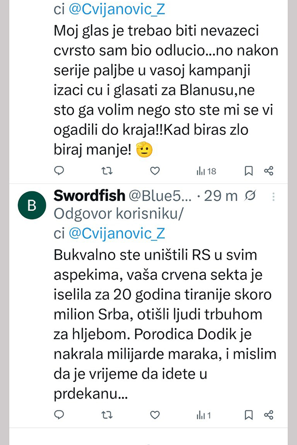 Ne stišavaju se reakcije na društvenim mrežama, nakon istupa Željke Cvijanović, članice Predsjedništva Bosne i Hercegovine i članice Glavnog odbora SNSD-a.