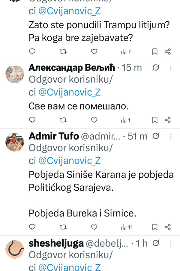 Donosimo samo one reakcije koje nemaju uvredljiv sadržaj: